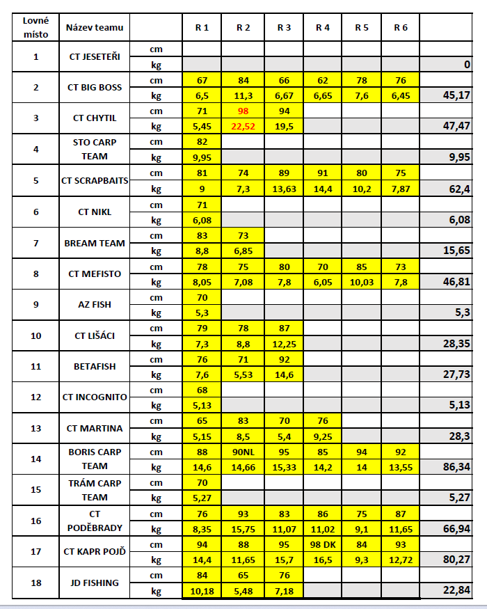 Na lovném místu č. 3 – CT Chytil, byly v noci připsány cenné body v podobě šupináče o délce 98 cm / 22,52 kg